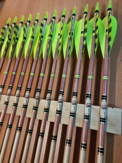 One Doz 11/32" POC/Bloodwood Custom Footed Arrows 35/40